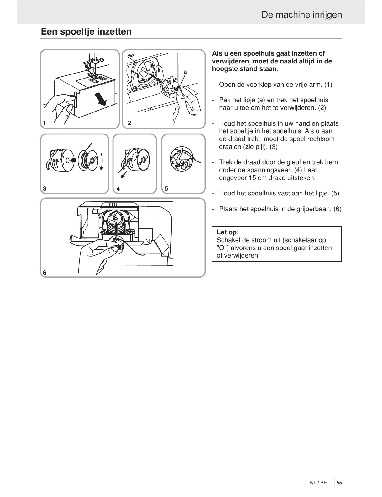 "O") alvorens u een spoel gaat inzetten