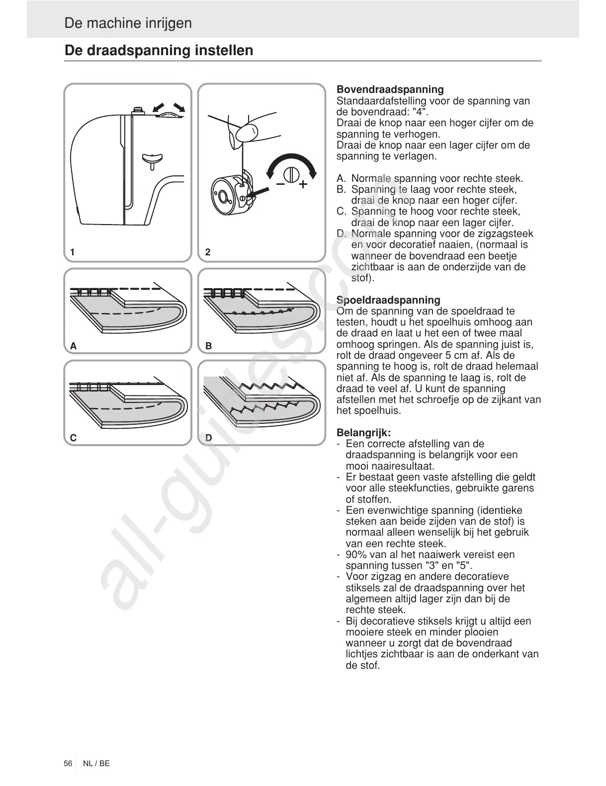 wanneer u zorgt dat de bovendraad