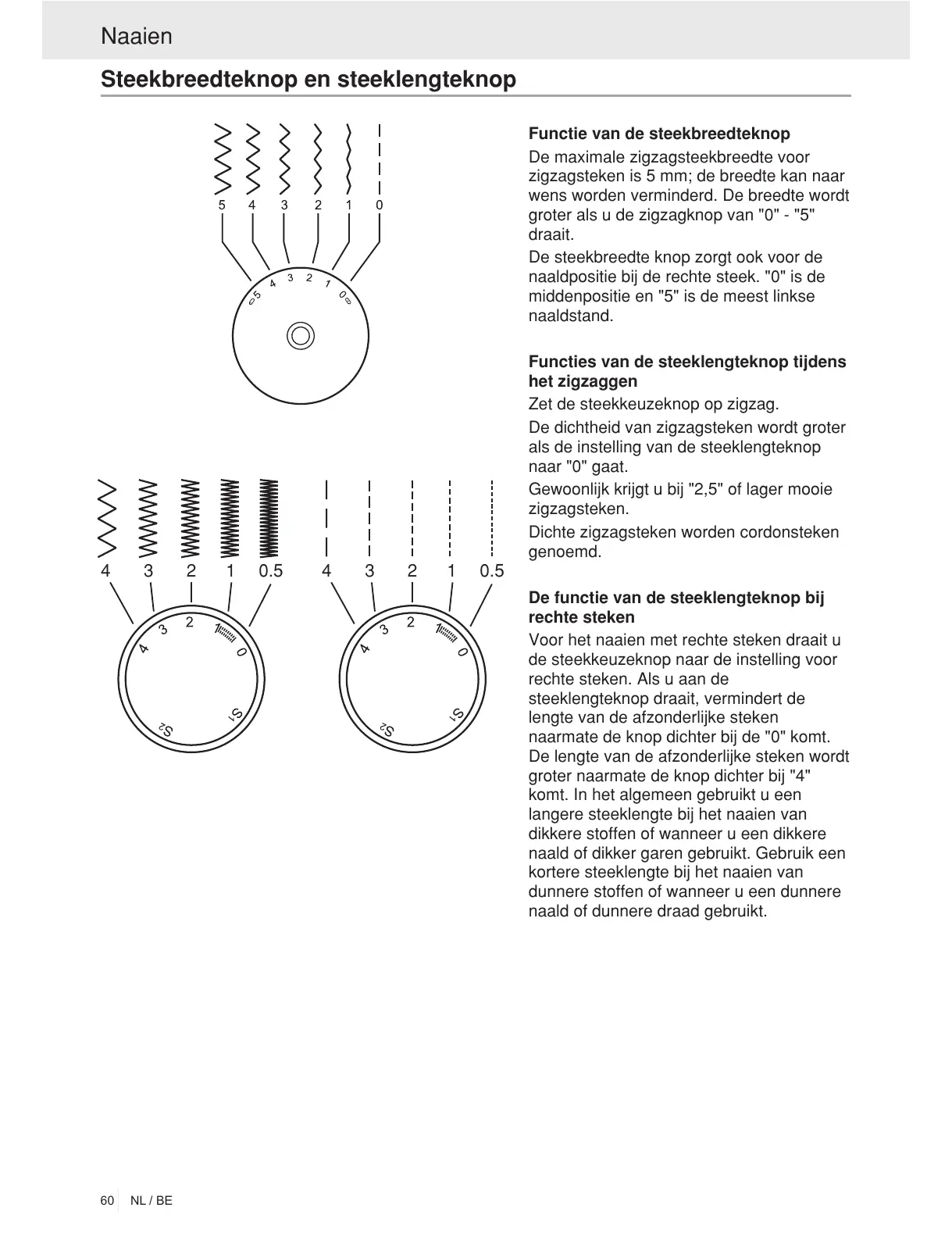 De steekbreedte knop zorgt ook voor de