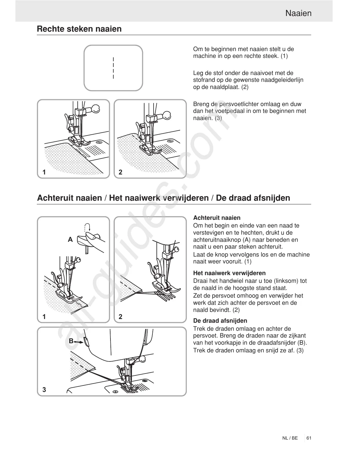 Achteruit naaien / Het naaiwerk verwijderen / De draad afsnijden