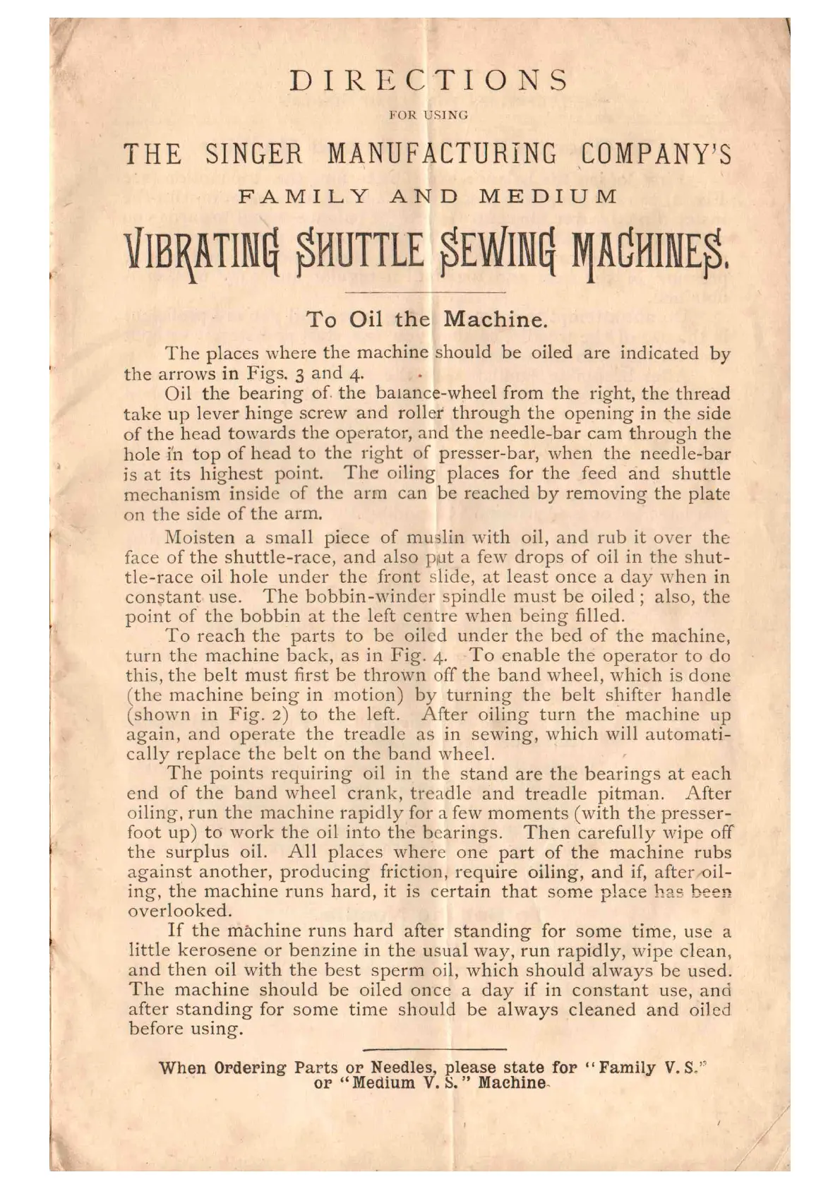 Singer VS1 - Singer Sewing Machine Operations; Oiling and Maintenance