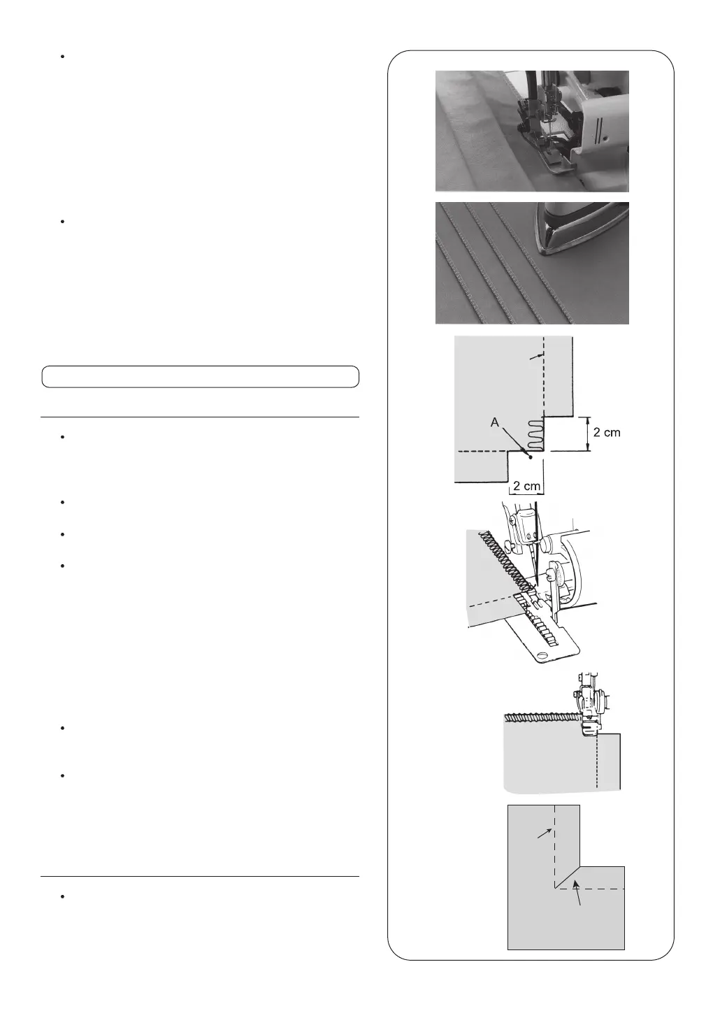 esquina, en línea con la orilla de costura de