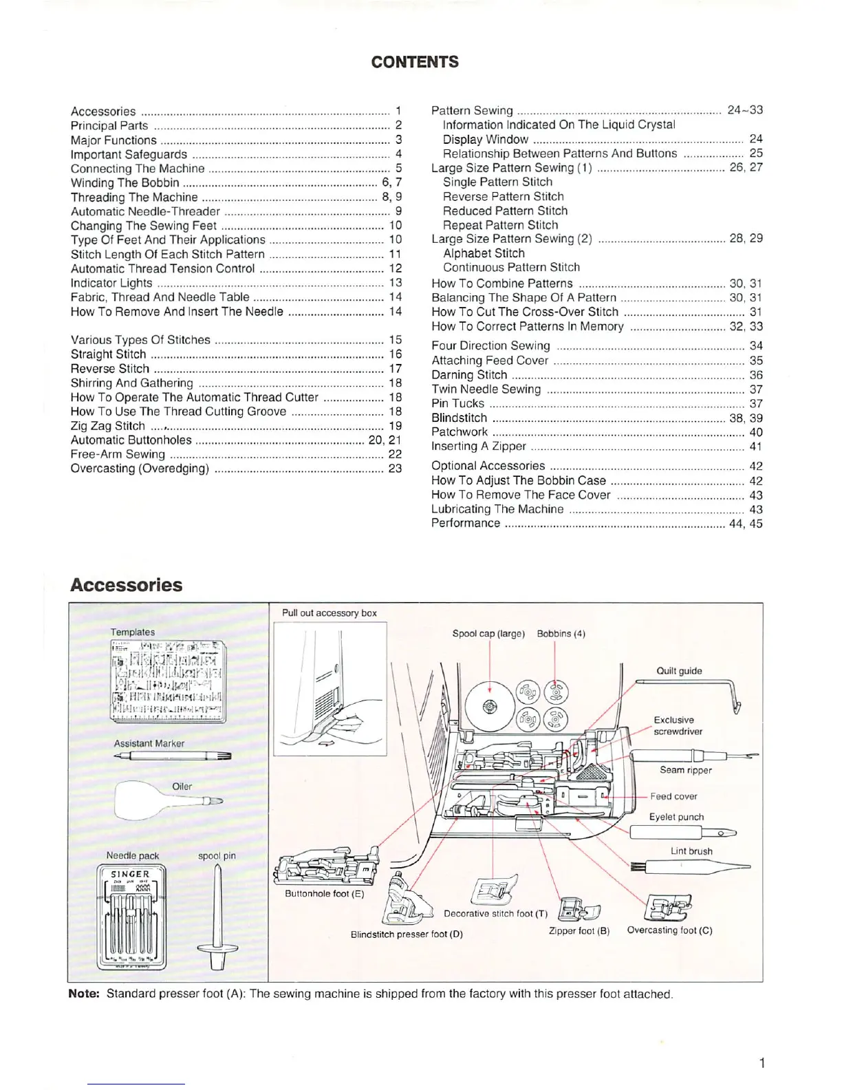 Singer XL-1 - Contents; Accessories