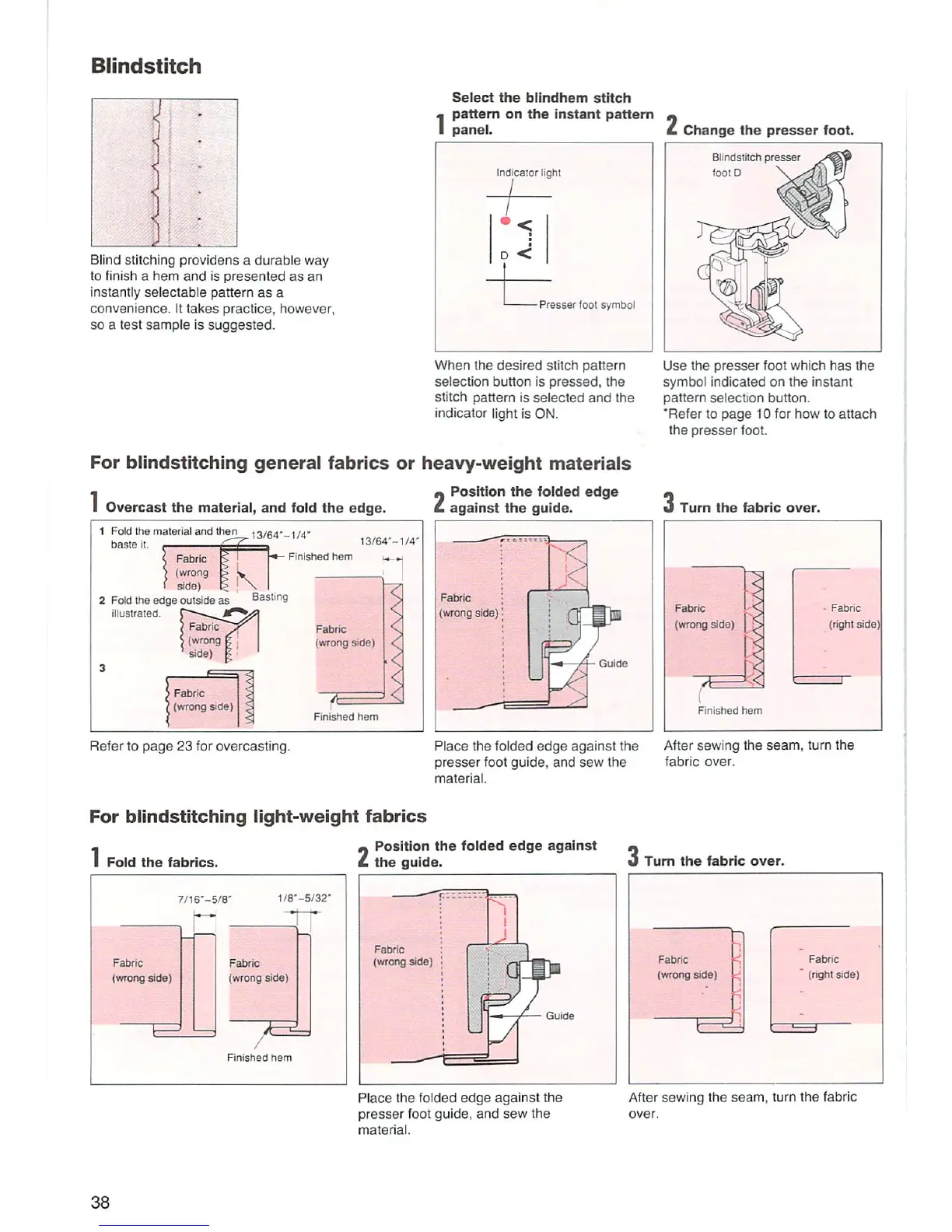 Singer XL-1 - Sewing a Blindstitch; Blindstitching General;Heavy Fabrics; Blindstitching Light Fabrics