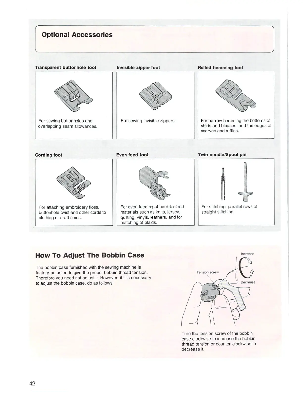 Singer XL-1 - Optional Sewing Accessories; Adjusting Bobbin Case Tension