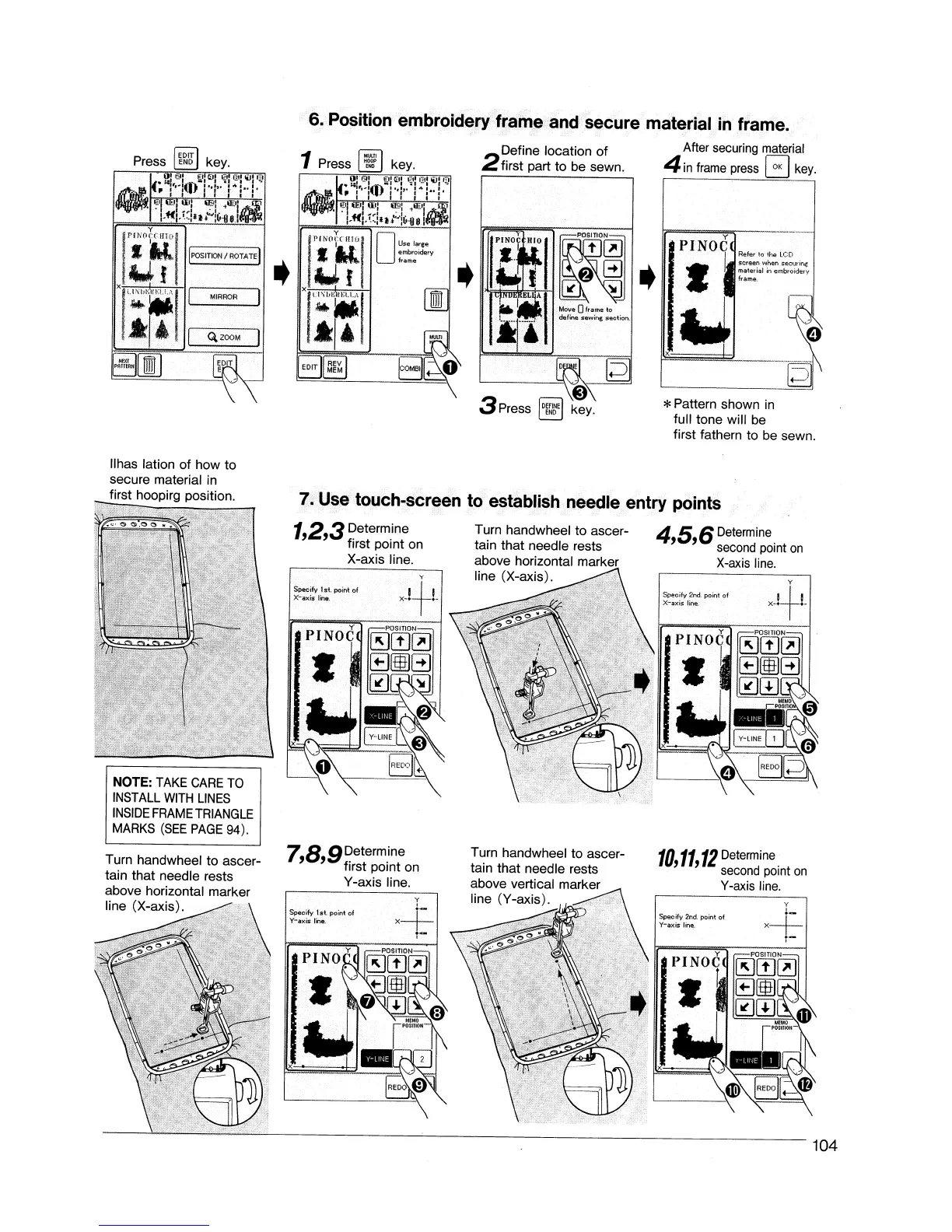 Singer XL-1000 - Position Embroidery Frame and Secure Material in Frame; Use Touch-Screen to Establish Needle Entry Points