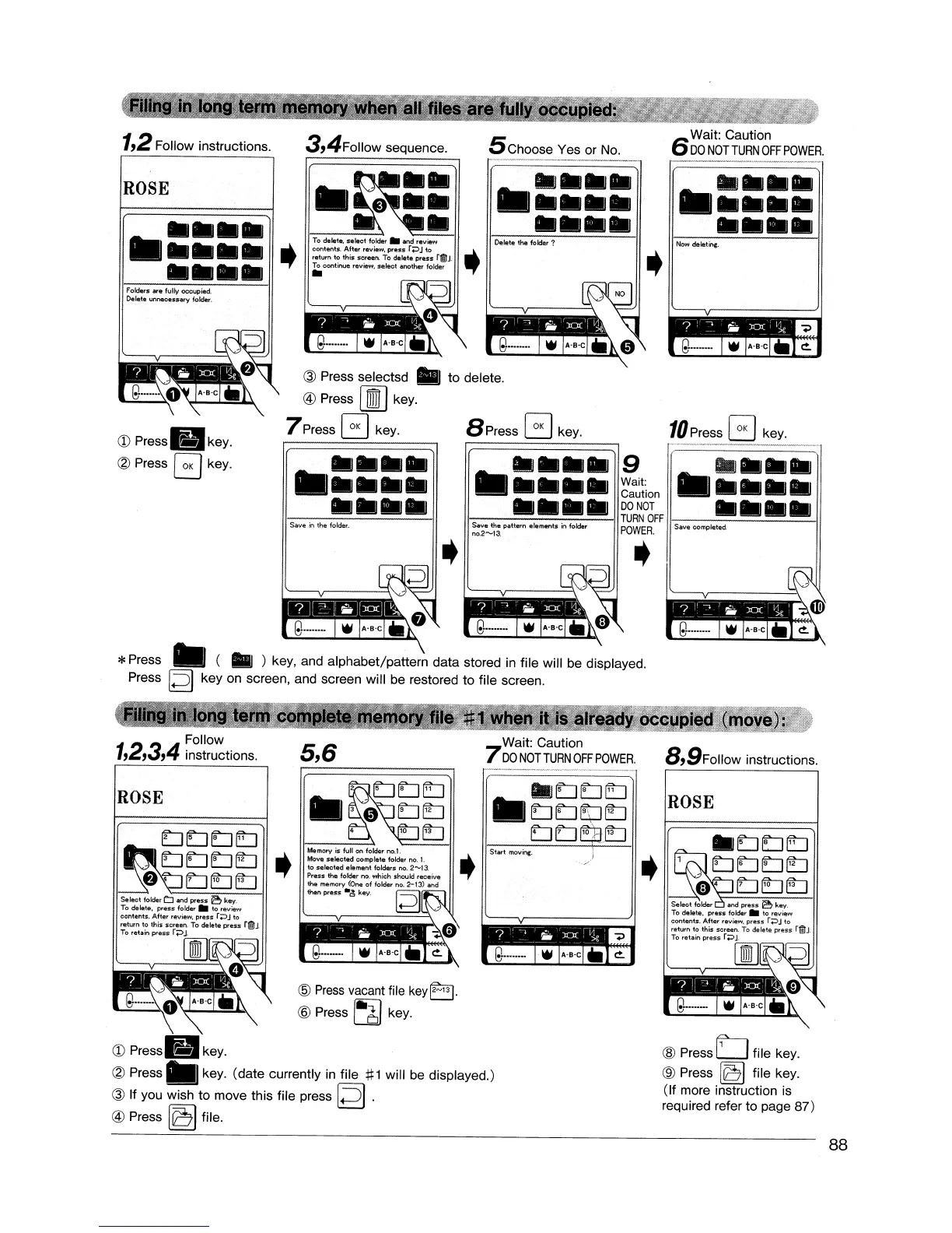 Singer XL-1000 - Filing in Long Term Memory When All Files Are Fully Occupied; Filing in Long Term Complete Memory File #1 When It Is Already Occupied (Move)