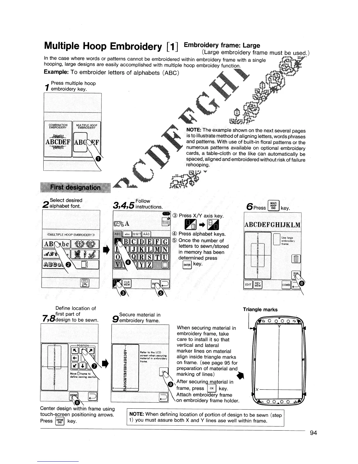 Singer XL-1000 - Multiple Hoop Embroidery; Embroidery Frame: Large; First Designation
