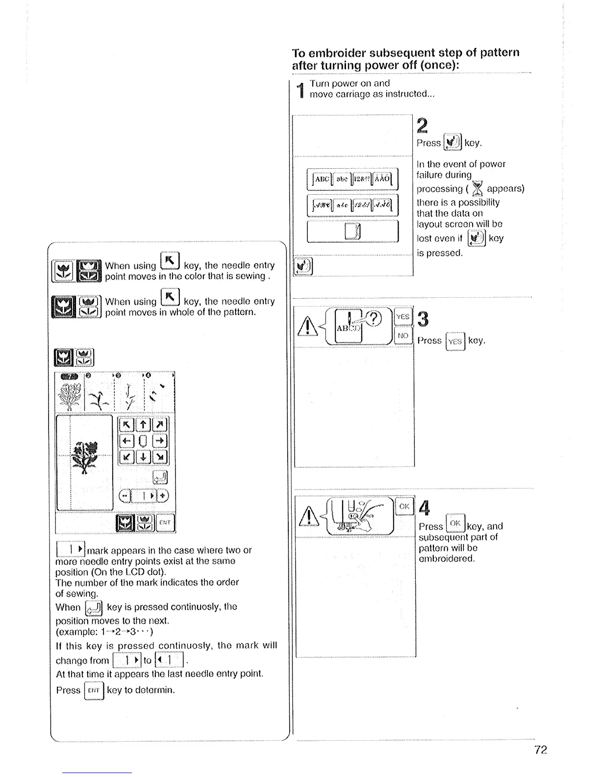 Singer XL-150 - Resuming Embroidery After Power Interruption
