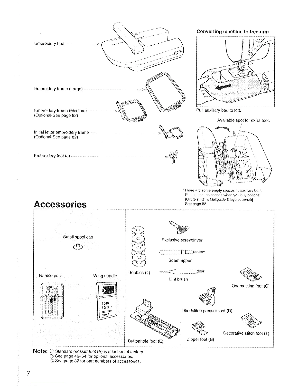 Singer XL-150 - Accessories; Converting Machine to Free-Arm