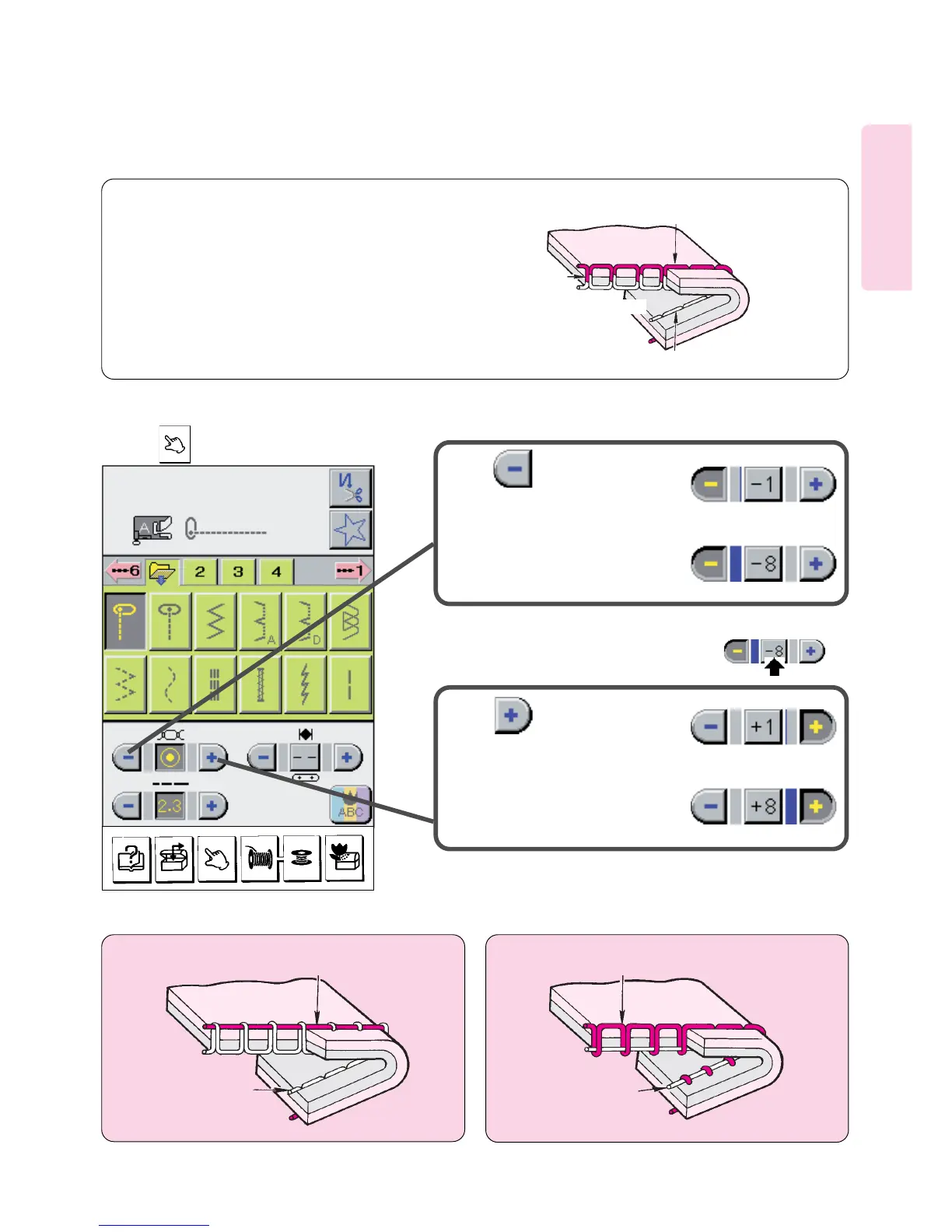 When thread tension is increased: When thread tension is decreased: