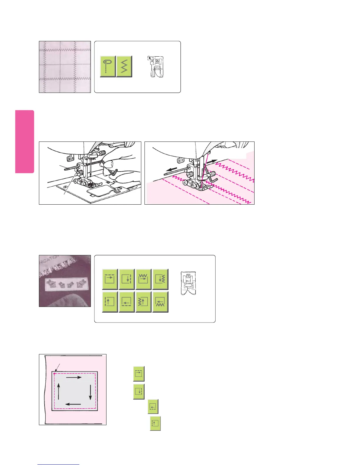 These straight and ZigZag stitch patterns are useful for sewing sideways, forward and