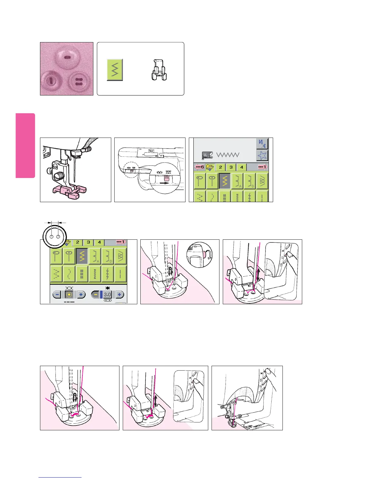 The Zigzag stitch is used to attach both 2 and 4-hole buttons.
