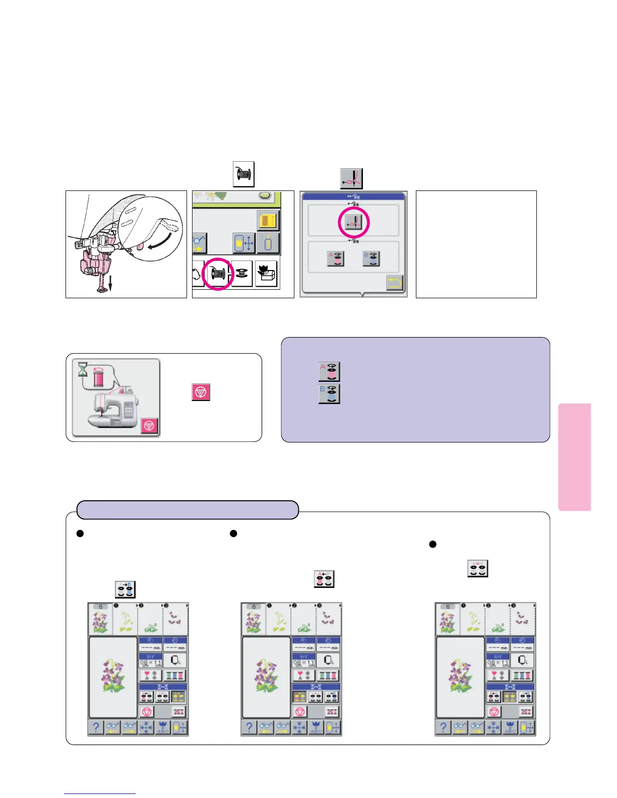 Press pictogram to rewind thread to right thread spool.