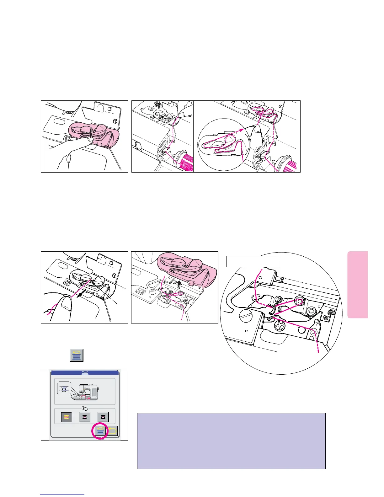 120). Install new spool of bobbin fill thread and follow steps 2 ~ 10.