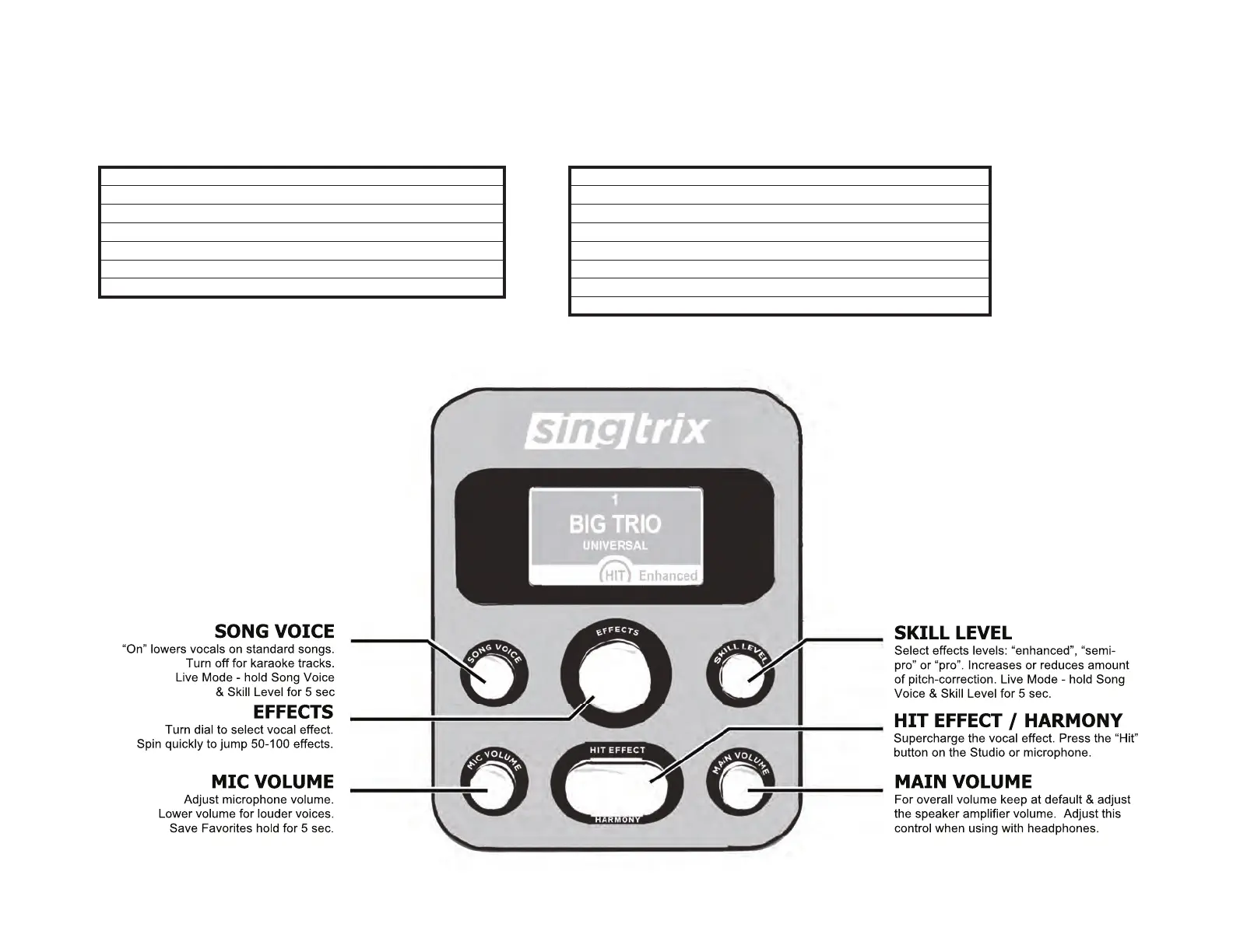 level analog output. Singtrix will tune your voice & live harmonies to the music played. TIP: when using karaoke apps, the 3.5 mm jack may activate on