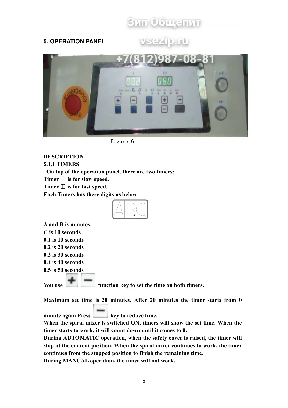 stop at the current position. When the spiral mixer continues to work, the timer