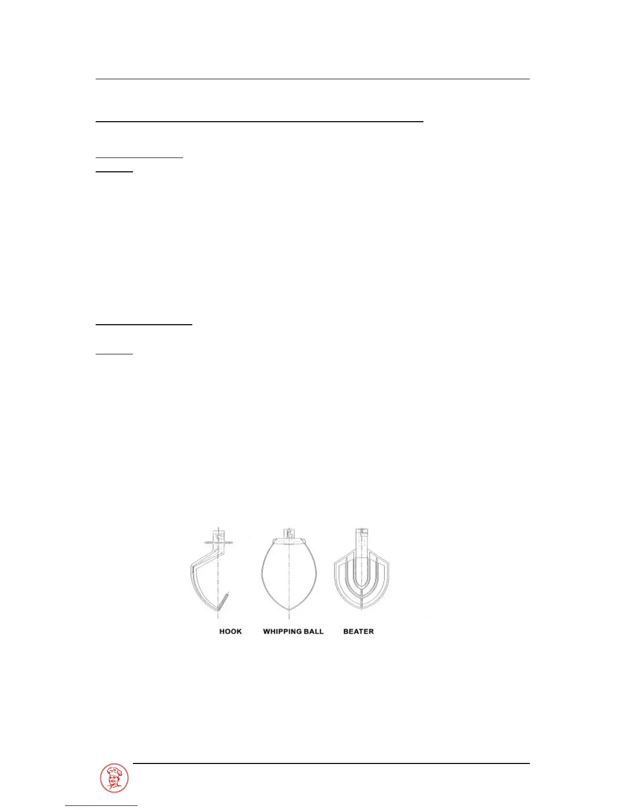 and mixing of sausage meats, beater to be used in 1 and 2 speeds only. The whipping