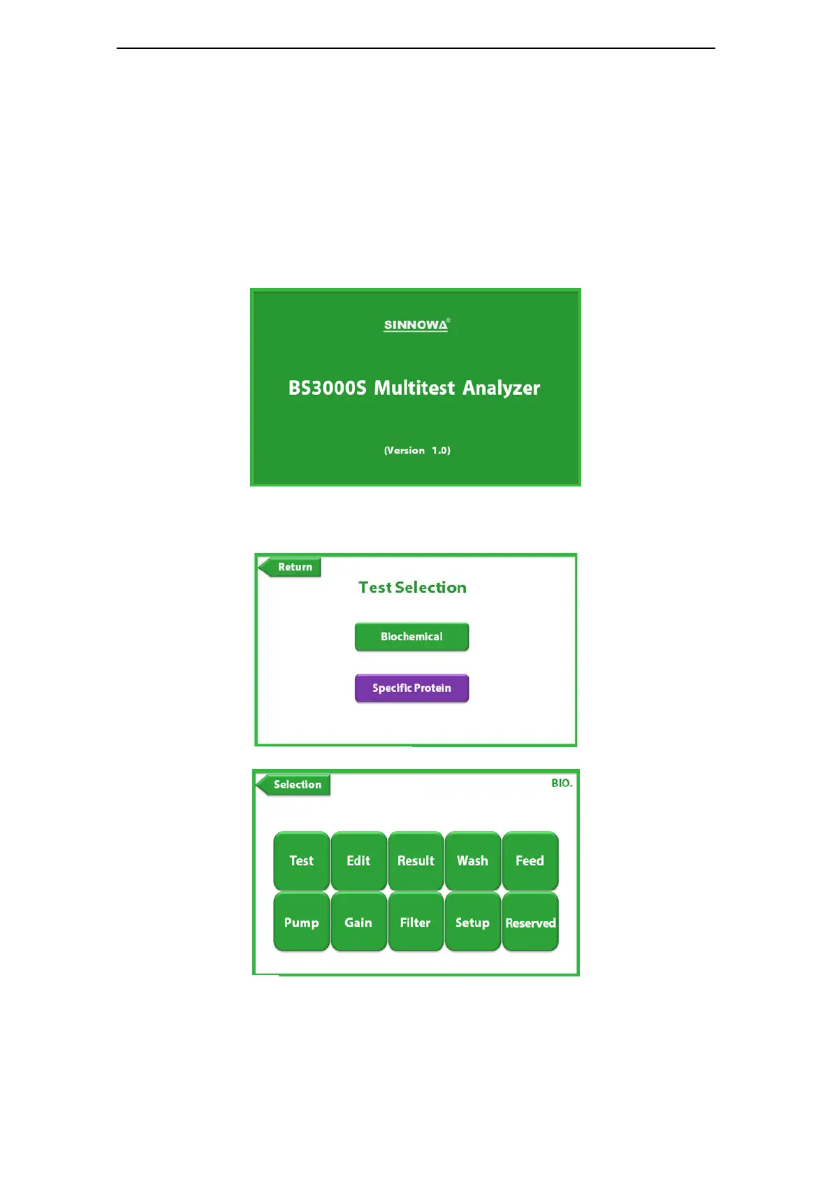 Test: To select the biochemical items to do sample test, after testing, the equipment will