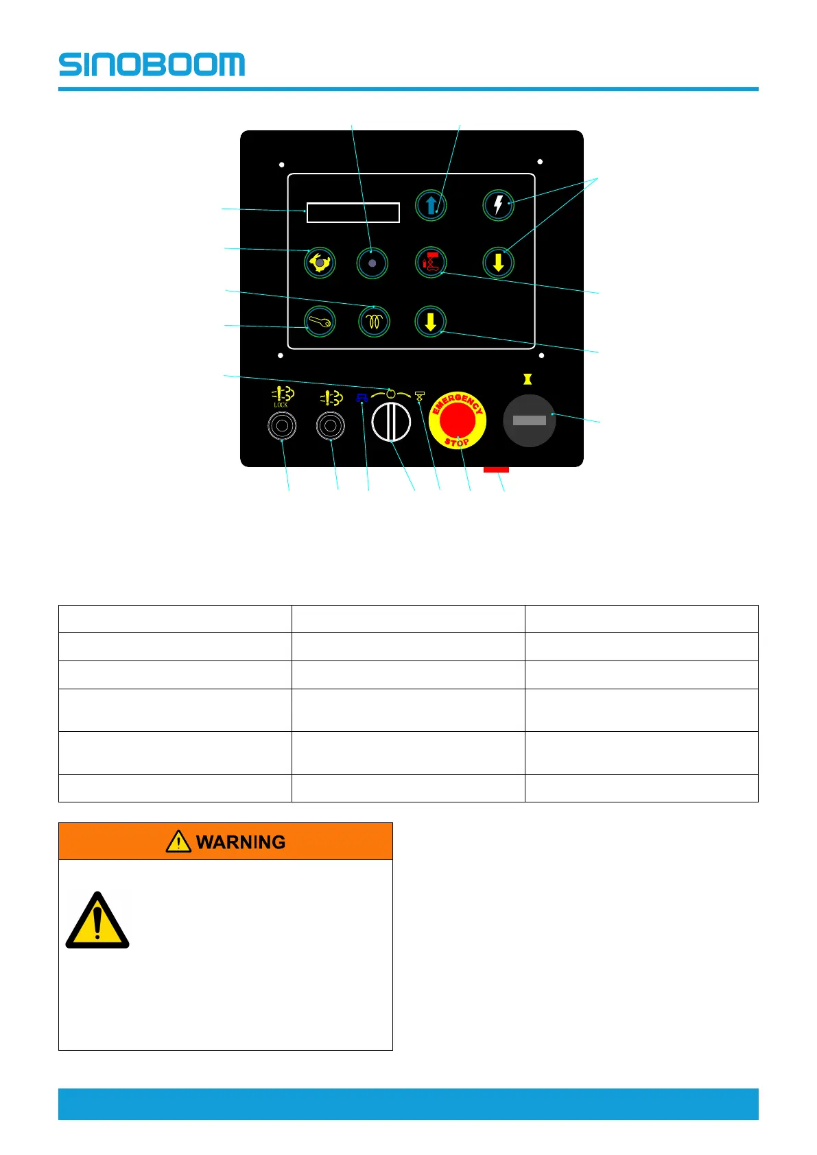 6. Ground position 12. Platform up switch 18. Glow plug switch
