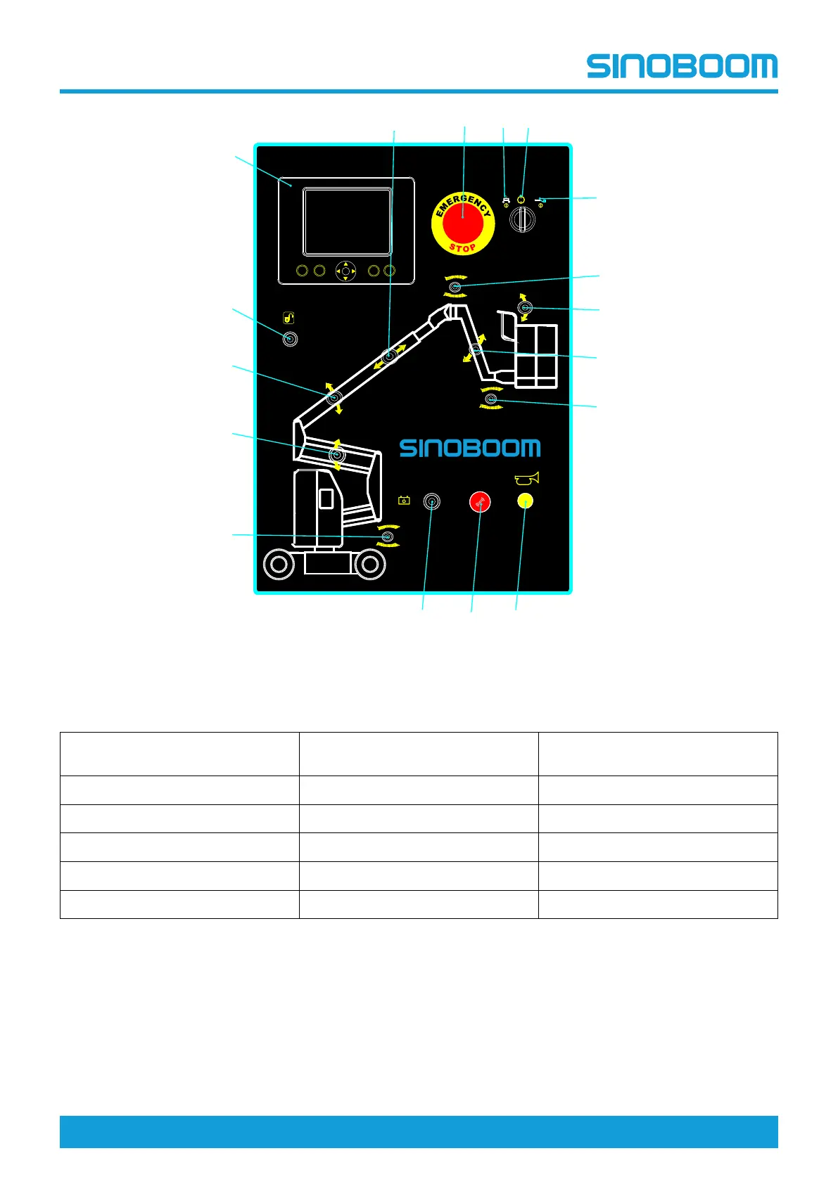4. Articulating boom luffing switch 10. Jib boom up/down switch 16. Emergency stop button