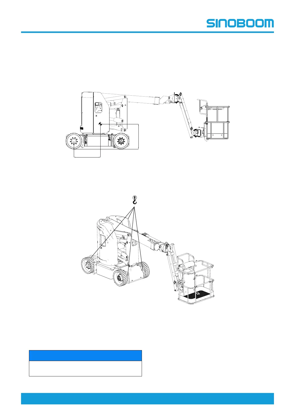 1. The boom must be stowed while lifting the machine.
