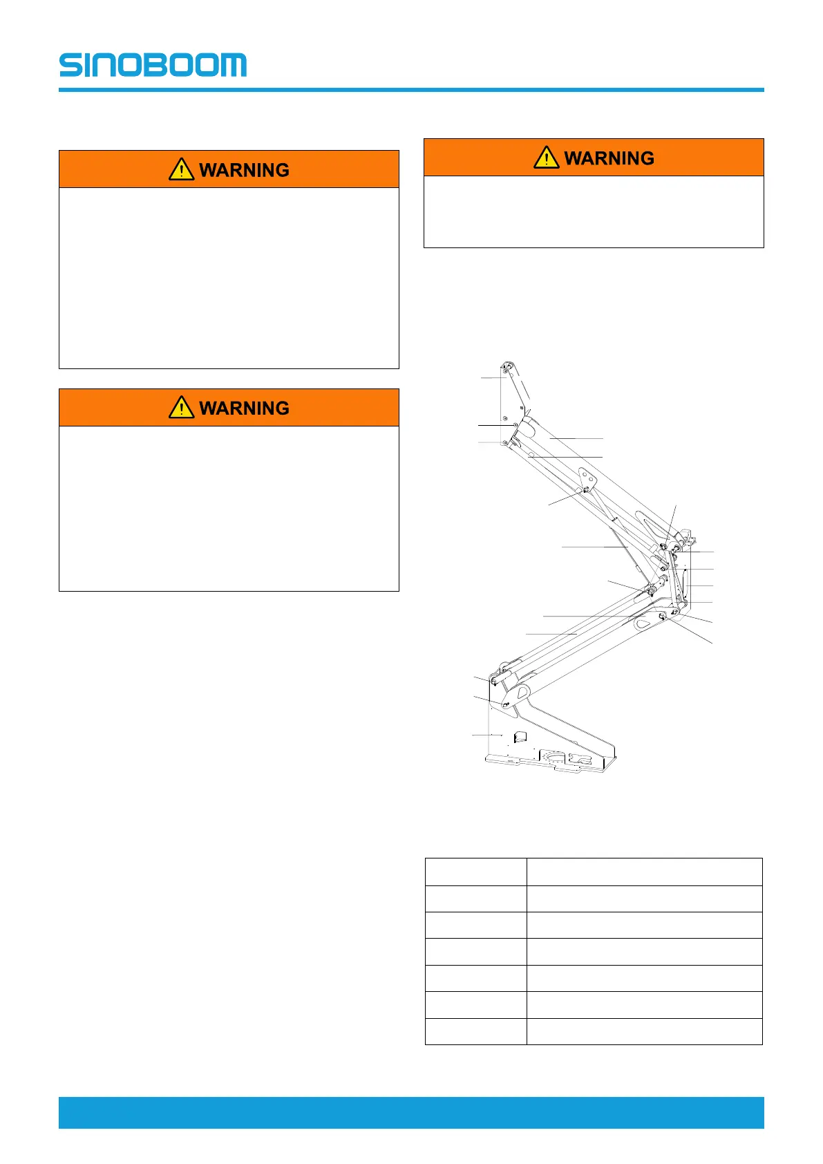 Table 6-2 Articulated boom assembly