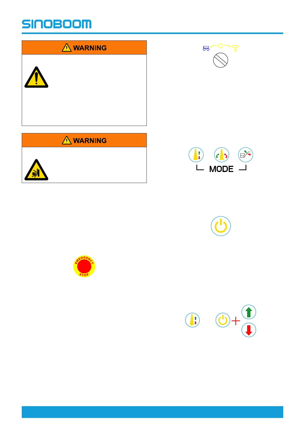 1. Push in the emergency stop button at ground