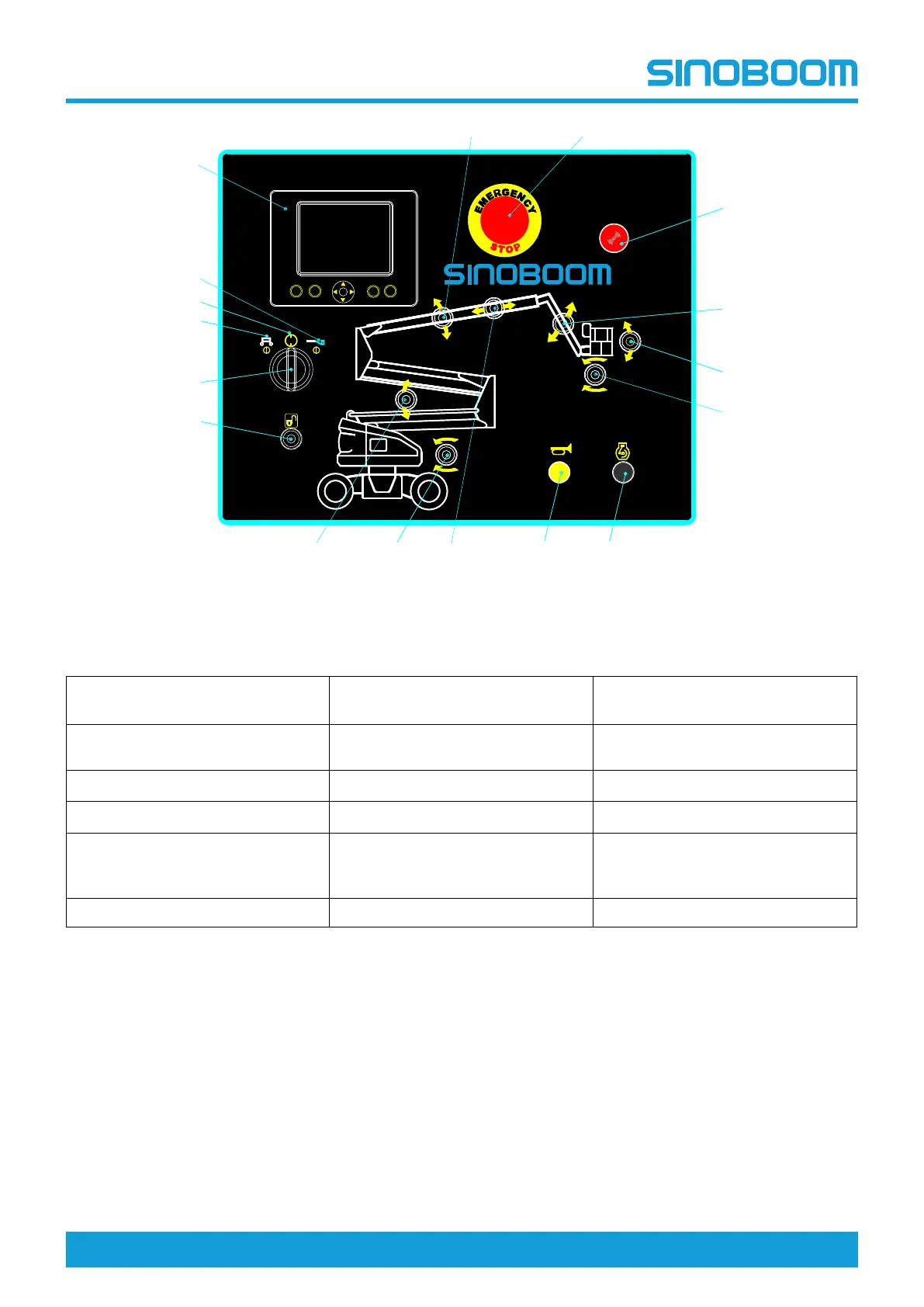 7.Foldable boom up/down switch 13.Platform leveling switch