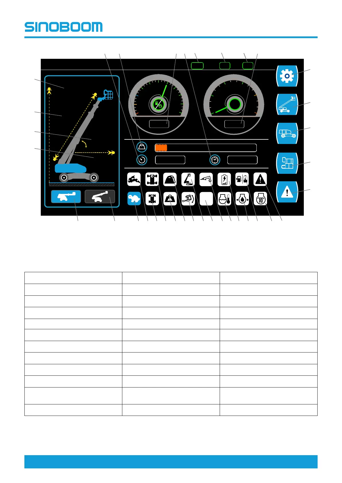 8. Turntable info 20. Platform tilt alarm