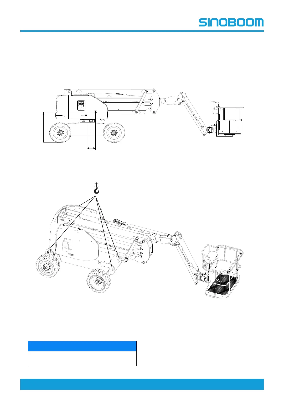 1. The boom must be stowed while lifting the machine