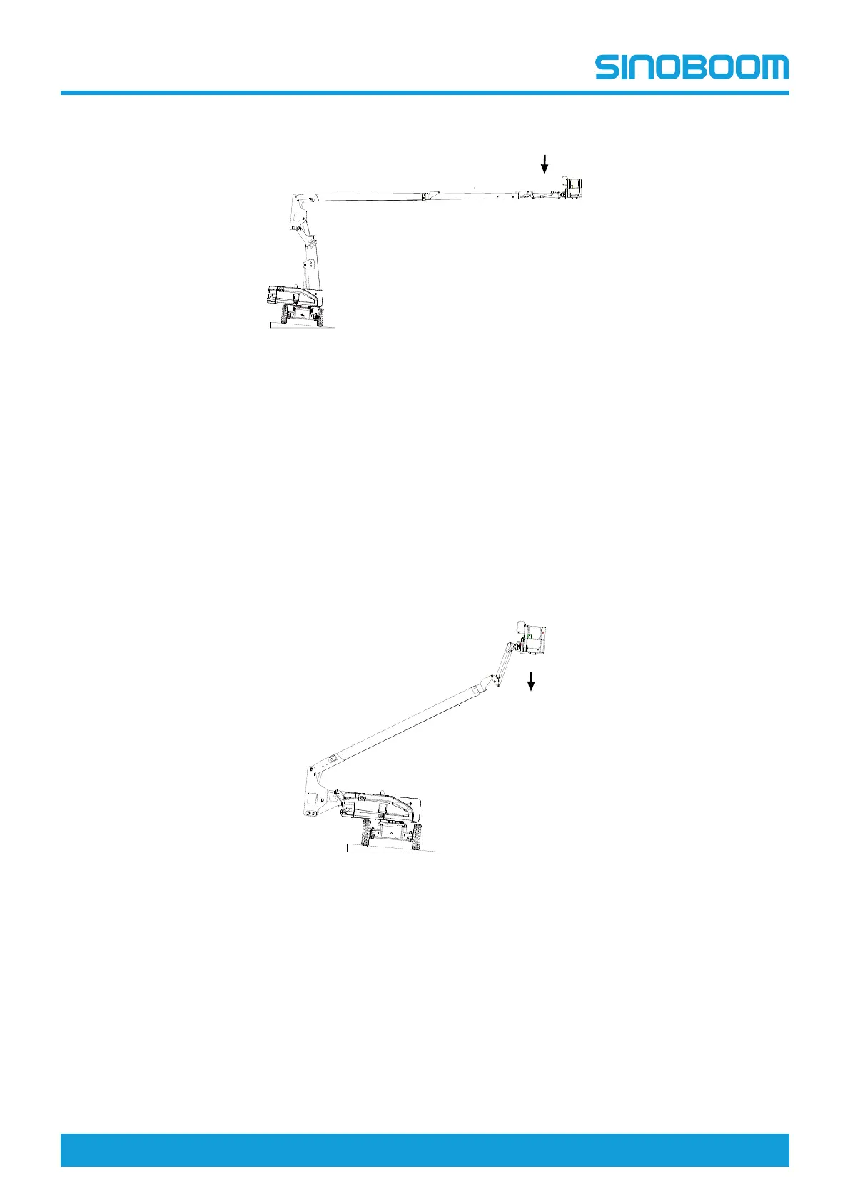 1. Turntable rotated to the position as shown in the figure, articulated boom fully raised, and telescopic boom not