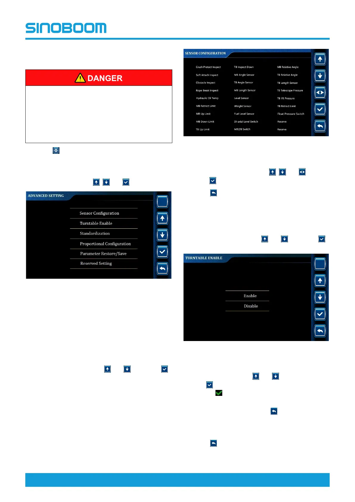sensor configuration, turntable enable,
