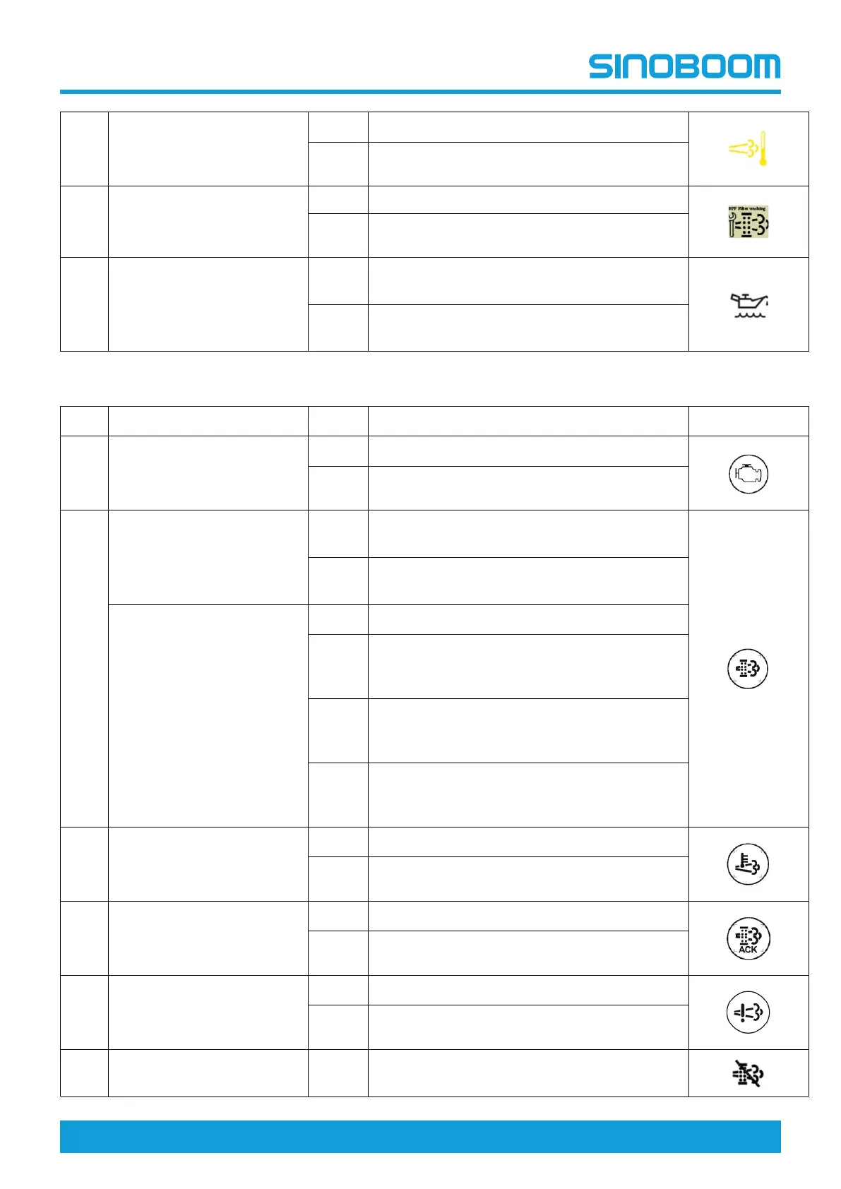 Table 7-4 Descriptions of indicator lights for Yuchai & Yanmar engines