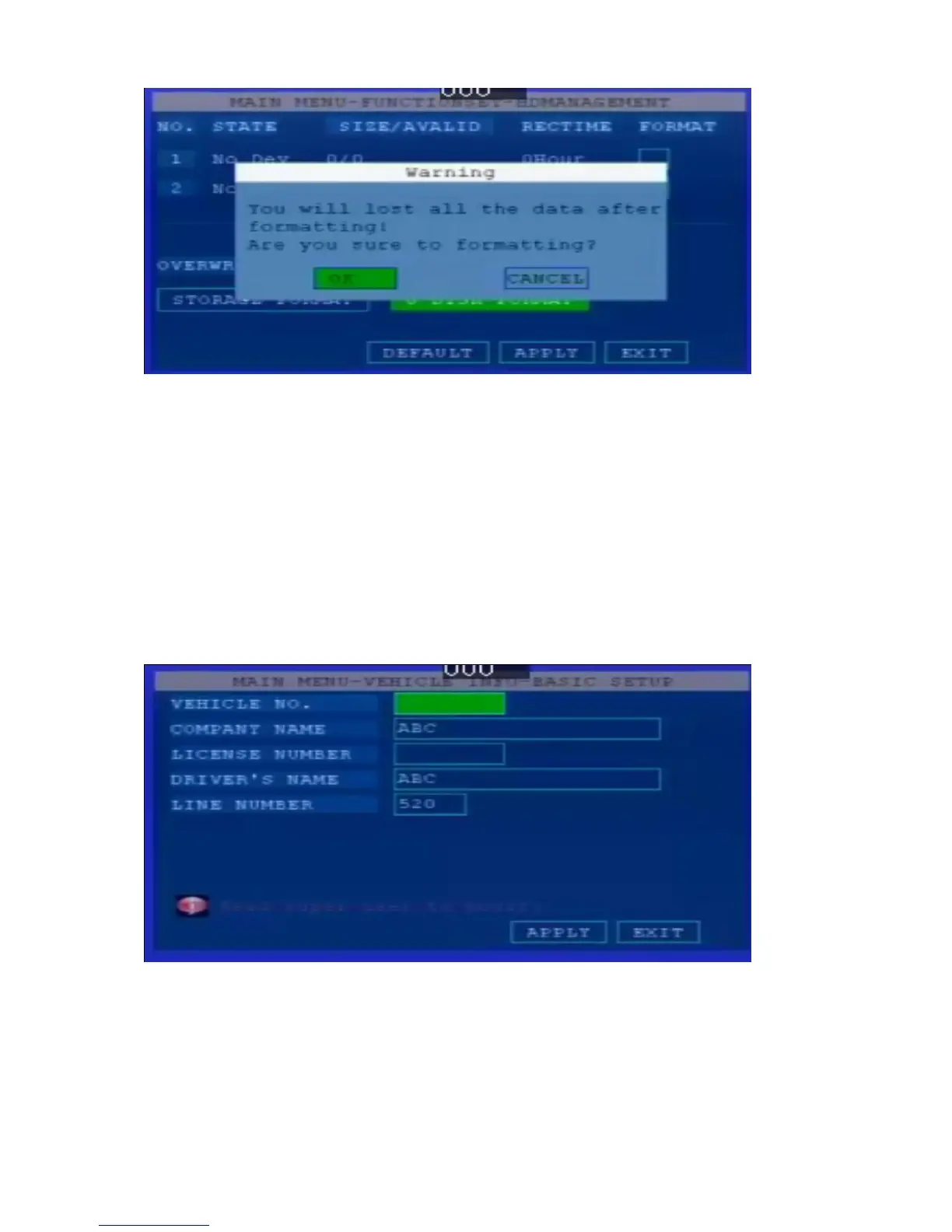 “ Company Name”,” Vehicle NO”,” Driver Name‟, press 【OK】 to enter, then enter the