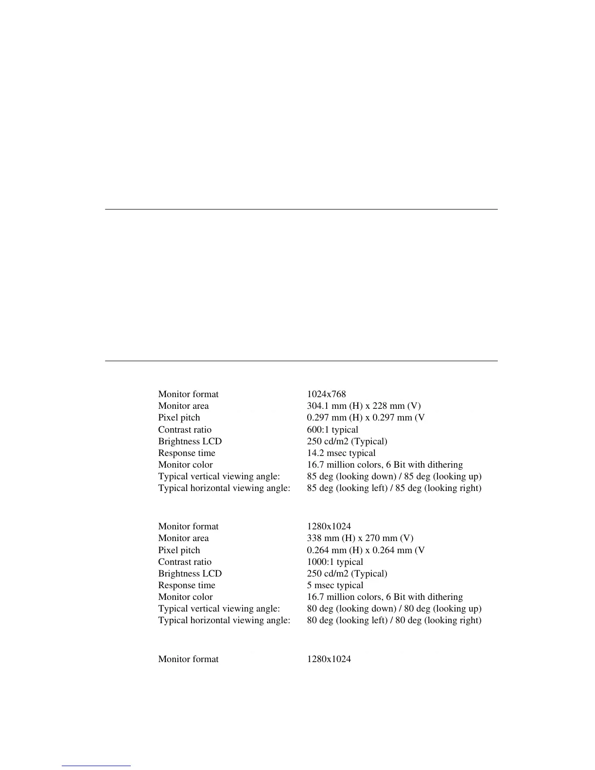 inch diagonal XGA resolution 1280x1024 LCD monitor, and 22 inch diagonal WXGA