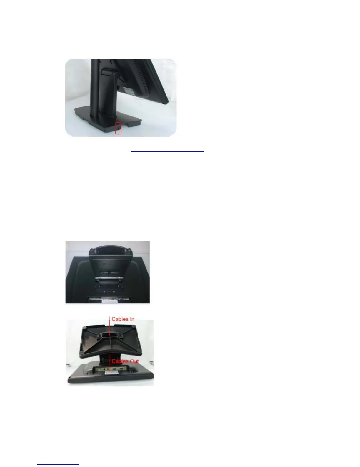 the hole in the base as shown in the picture above. Only use one of the following: Serial or USB touch cable