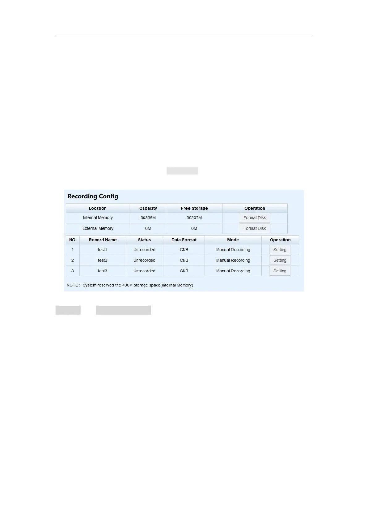 click Setting button to configure the data recording settings.