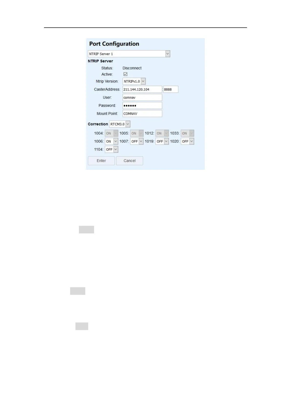 Set the Ntrip Caster address and Nrtip Caster port; this IP address is the same