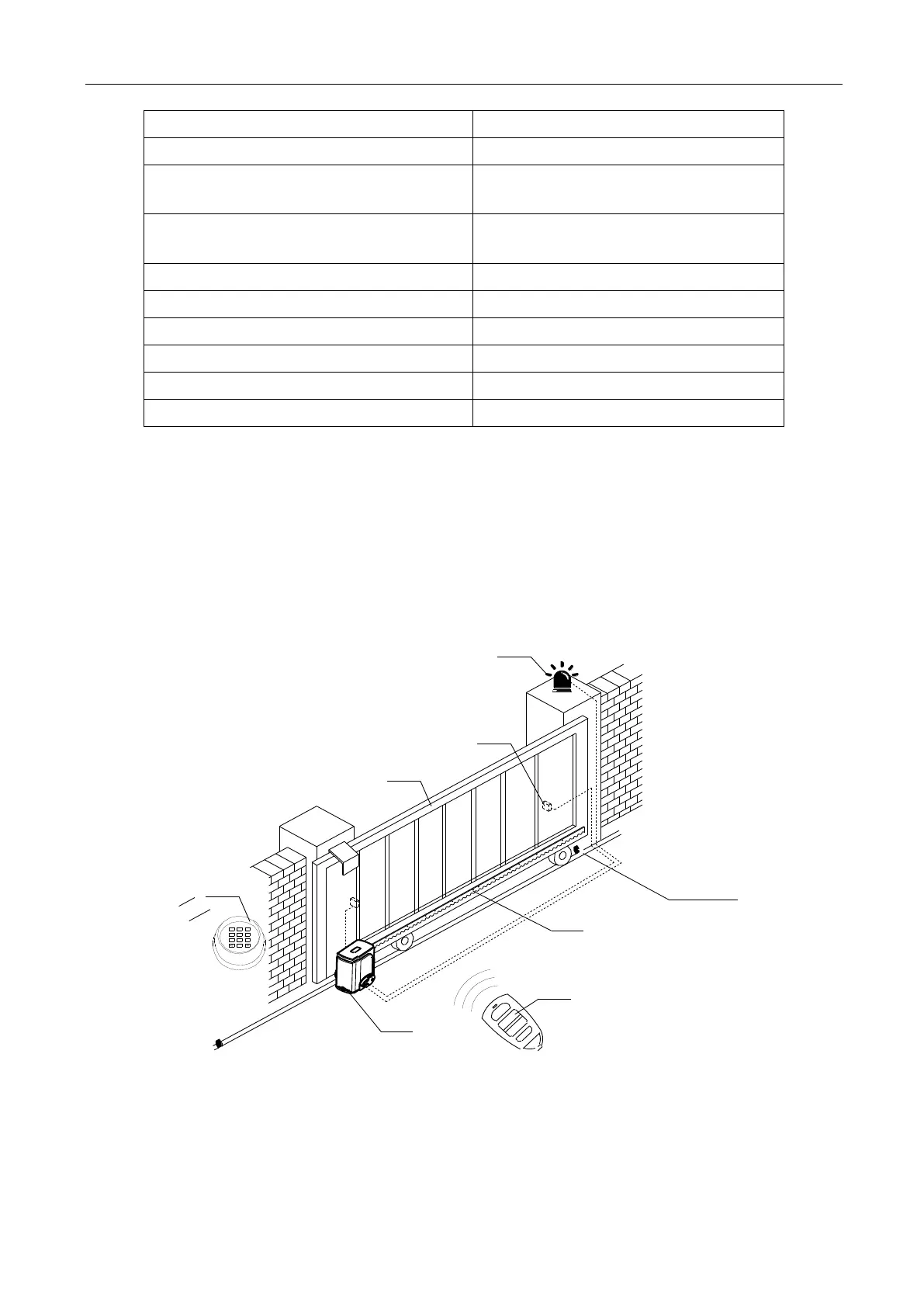 ① Gate opener; ② Wireless keypad (optional); ③ Gate; ④ Infrared sensor (optional);