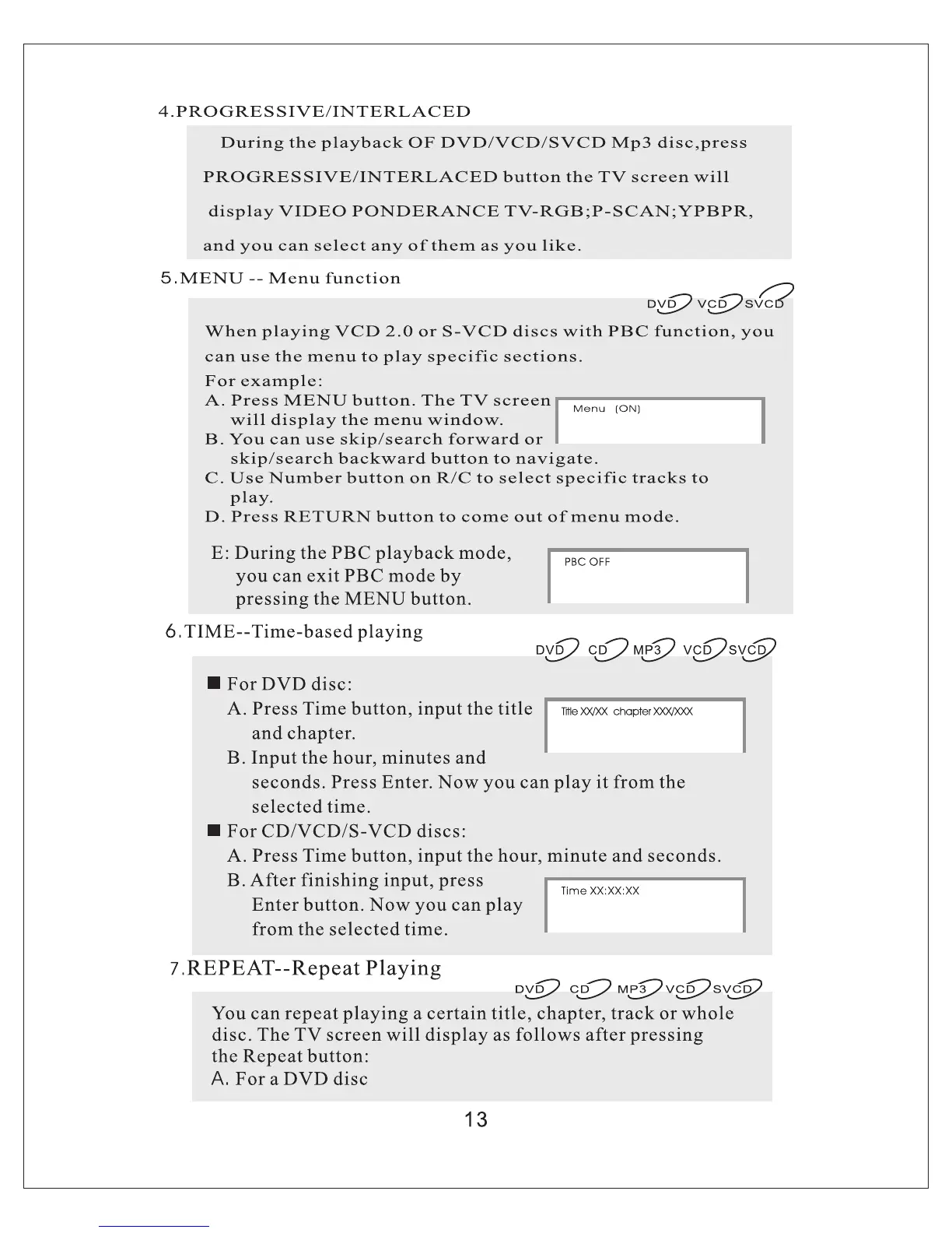 Sinotec PC-9203DVD - Progressive;Interlaced; Menu Function; Time Based Playing; Repeat Playing
