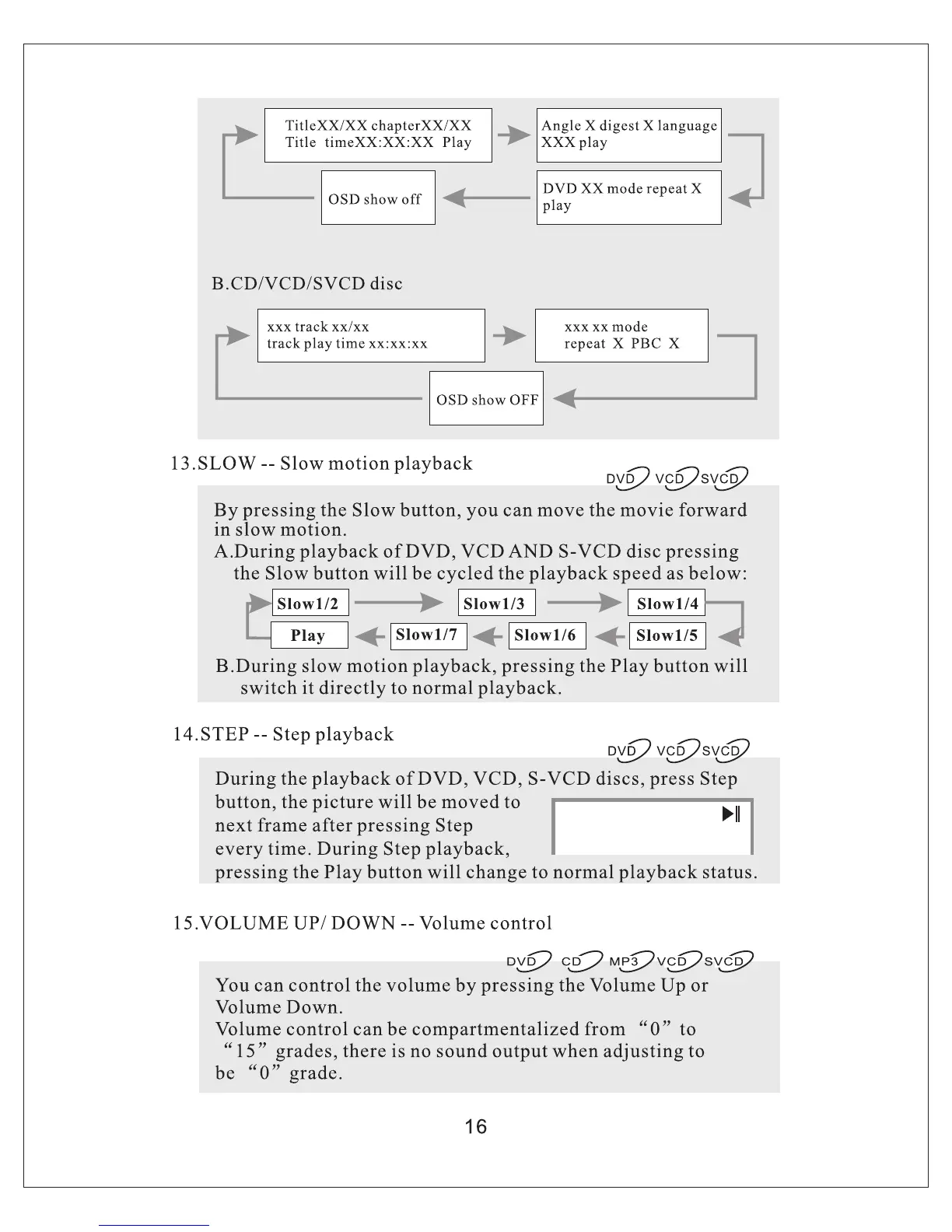 Sinotec PC-9203DVD - Slow Motion Playback; Step Playback; Volume Control