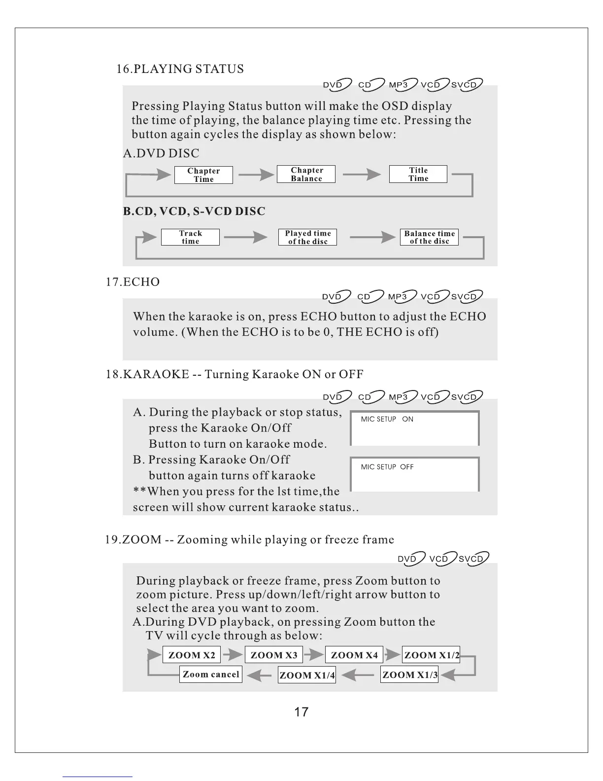 Sinotec PC-9203DVD - Playing Status; Echo; Karaoke; Zooming While Playing or Freeze Frame