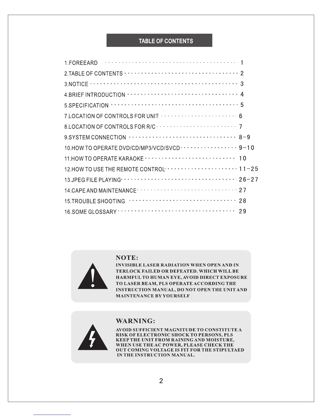 Sinotec PC-9203DVD - Table of Contents