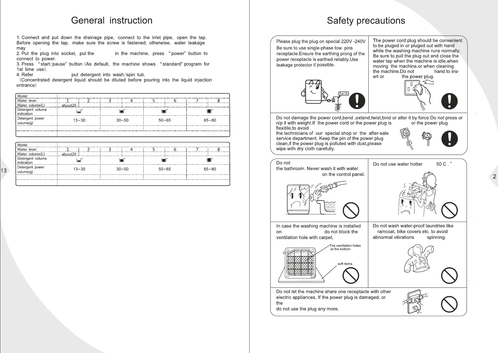 Washing capacity(kg)