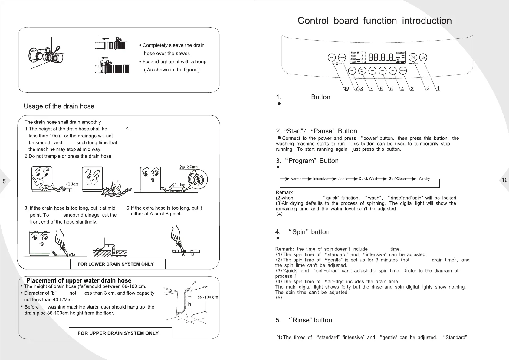 Notice: single wash, spin and rinse are effective only under the standard, intensive and