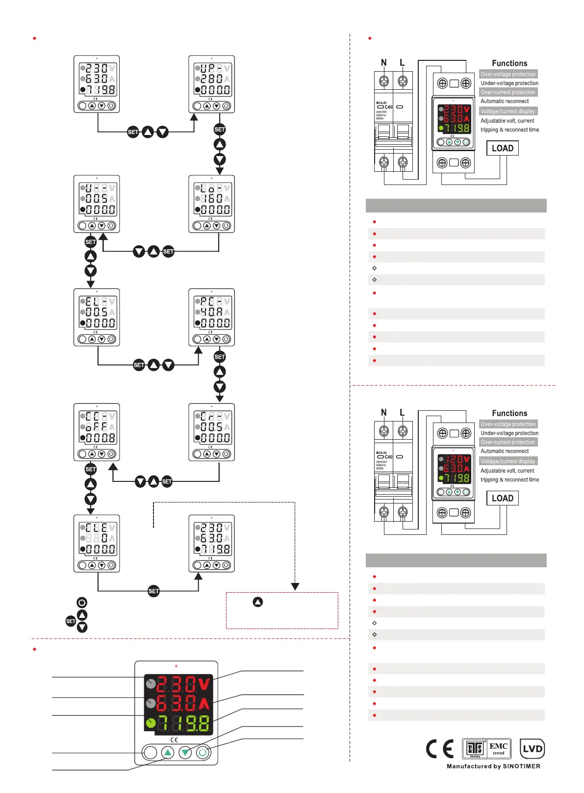 Over-current 1~40A(Default: 40A) 1~63A(Default: 63A)