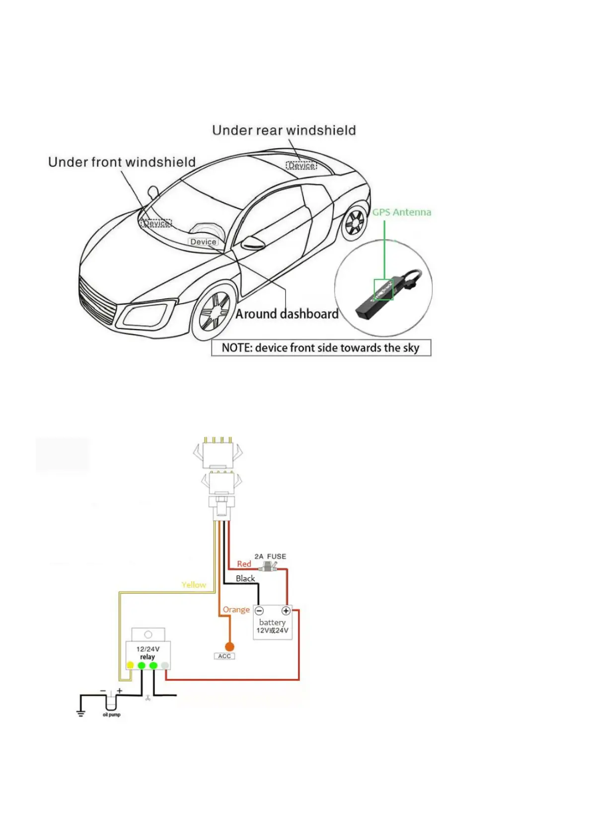 2. The GPS antenna side should towards to clear sky.