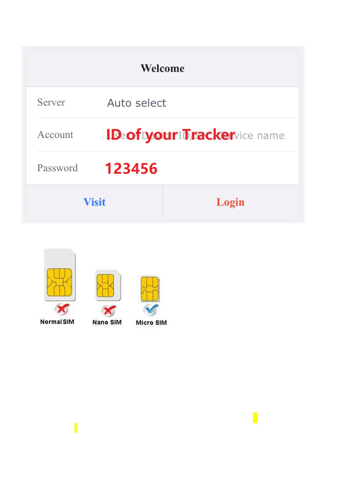 5. Please send SMS to tracker to set the APN: (the yellow place is BLANK)