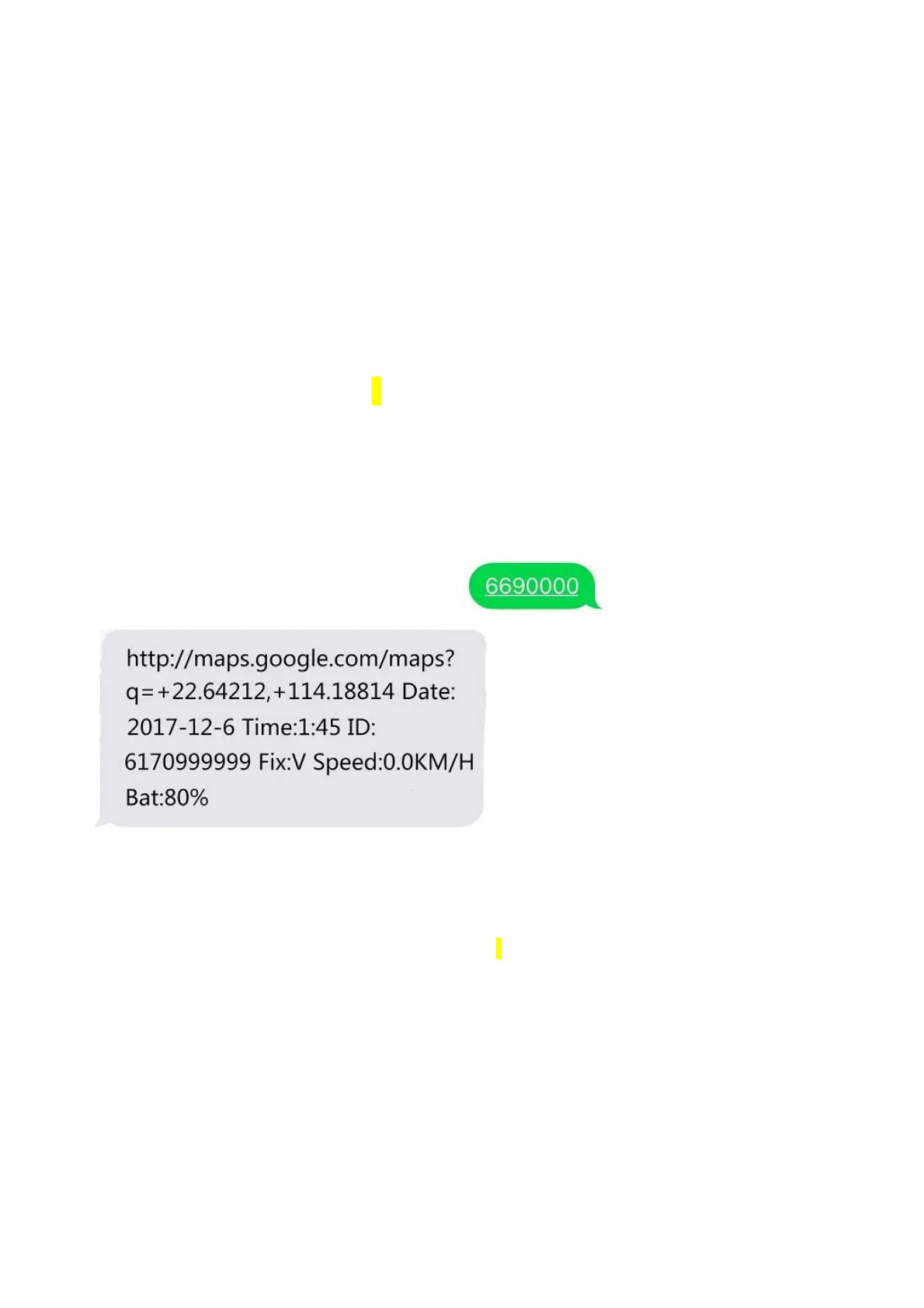 Google Maps link of position,or sending message “6690000” to SIM
